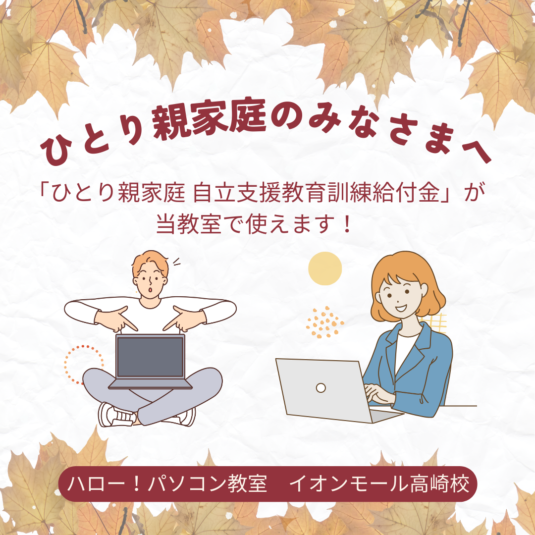 ひとり親家庭の為の給付金制度も使える!高崎・前橋でMOS資格ならハロー!パソコン教室へ♪