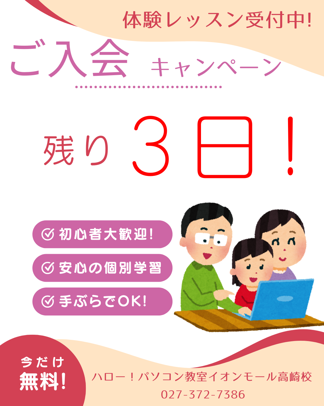 春のキャンペーン残り3日!入会は今がチャンス!高崎市のパソコン教室ハロー!へ