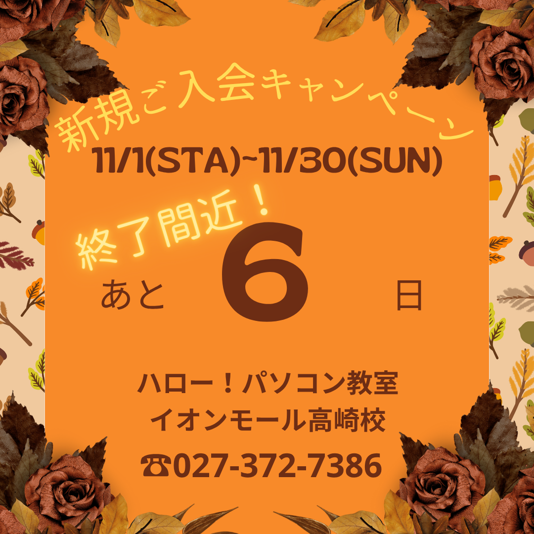 ハロー!パソコン教室高崎校では、ただいま 入会金0円キャンペーン 実施中!