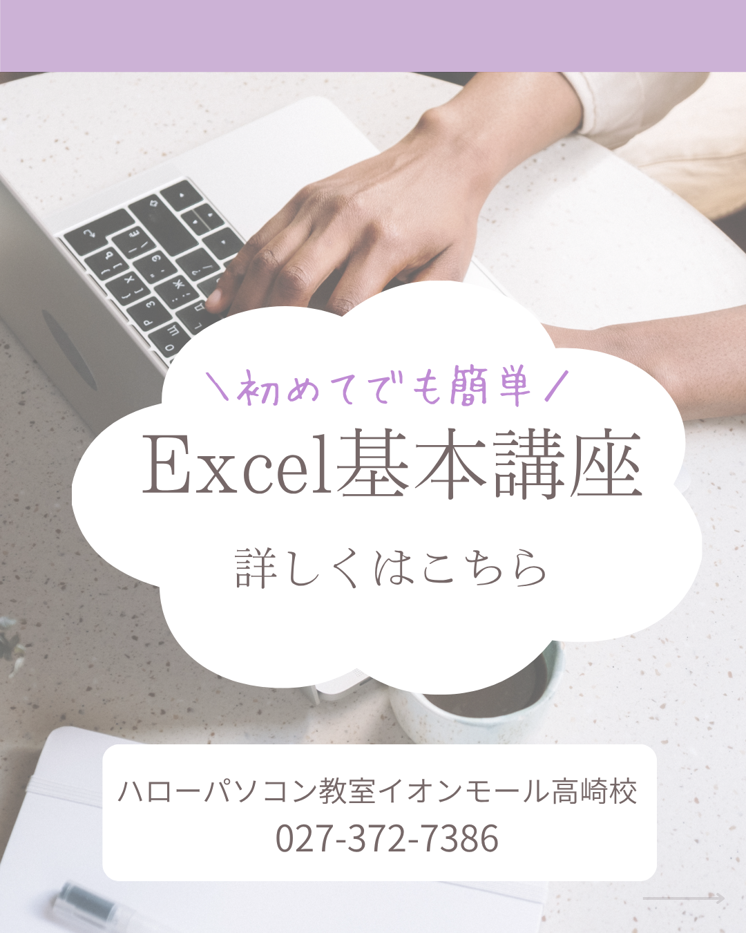 ハロー!パソコン教室 イオンモール高崎校では、初心者の方からスキルアップを目指す方まで、レベルに合わせたExcel講座をご用意しています。