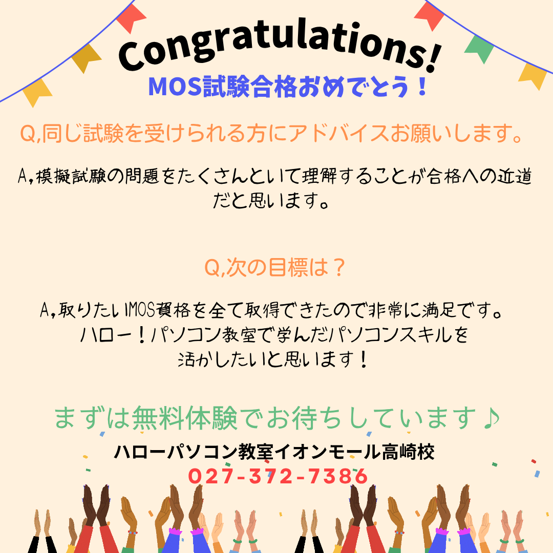 MOS資格取得するなら高崎のハロー!パソコン教室